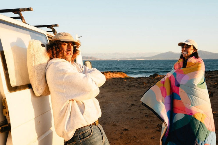 Crafted from 100% recycled plastic bottles and featuring insulated, machine washable construction, this versatile accessory transforms from a blanket to a pillow, sleep sack, and even a waterproof cape. Made with eco-conscious 50D Ripstop REPREVE® fabric, it's your durable, water-repellent, and stain-resistant companion for van life, hiking, picnics, and beach outings.