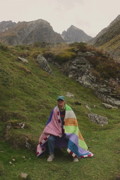 Switches from cosy blanket to hands-free cape to supportive neck pillow. Reversible 50D recycled Ripstop and 100% recycled polar fleece keeps it lightweight, packable, weather-ready, quick-drying, and machine washable.