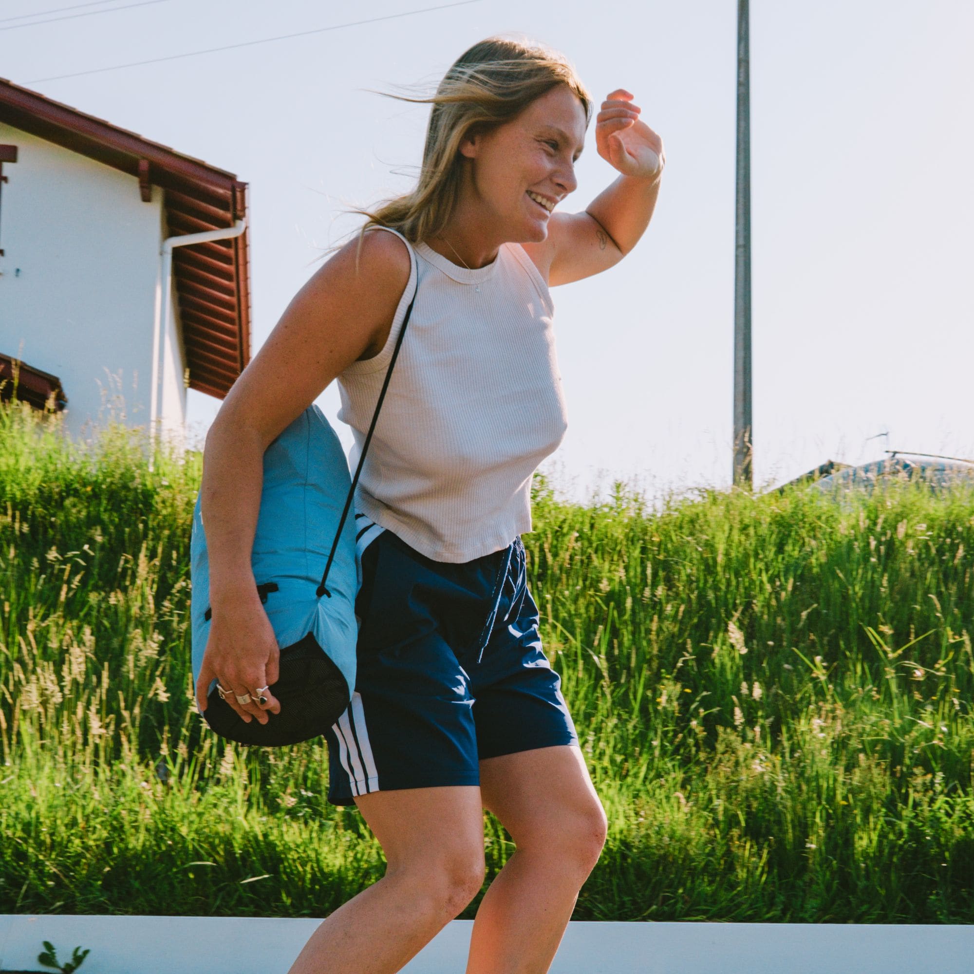 Lets sand fall through and promotes airflow - ideal for beach days or gym gear -